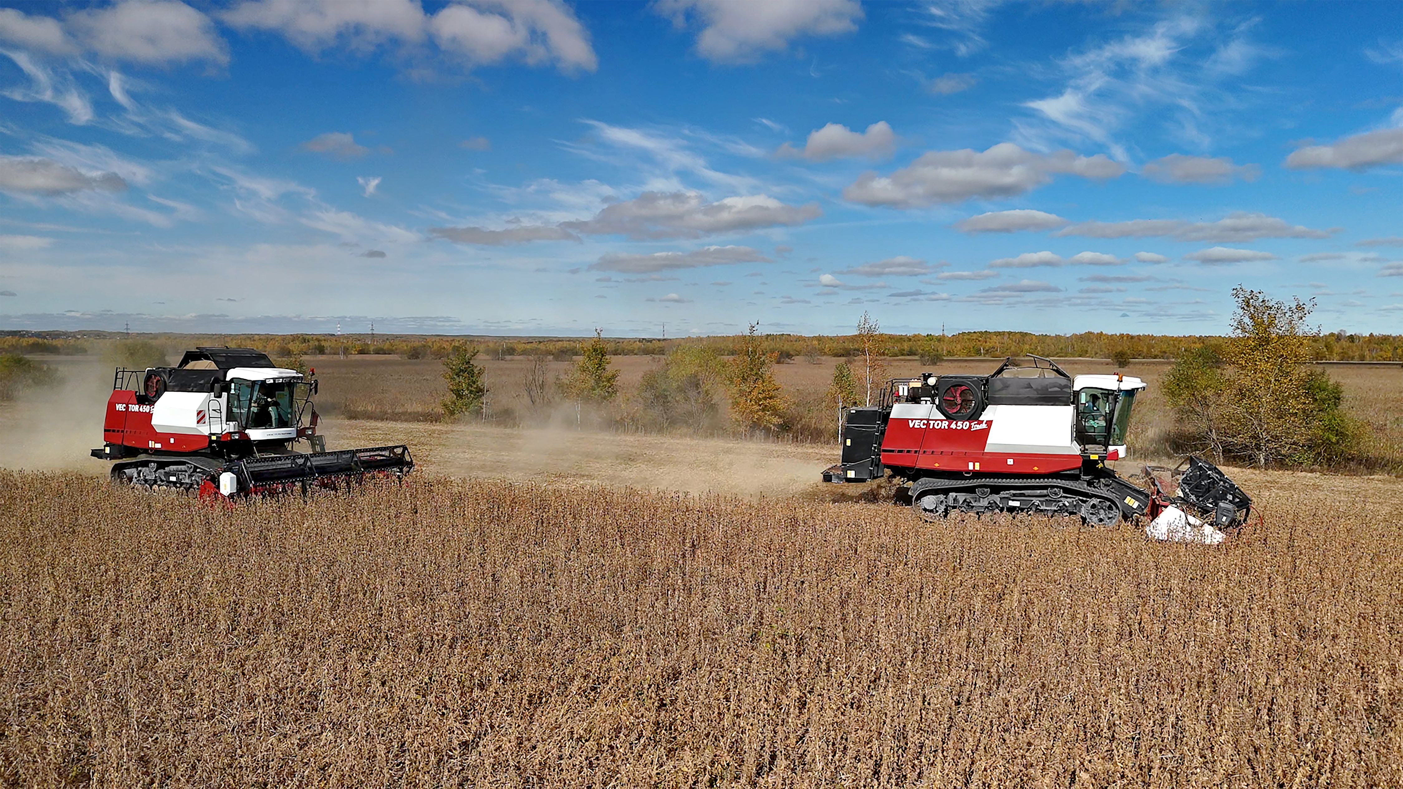 Спектр культур широкий: зерновые — ячмень, овес, пшеница, и зернобобовые — соя. VECTOR 450 Трак справляется уверенно. Но главное, что здесь ценят, — это потери.