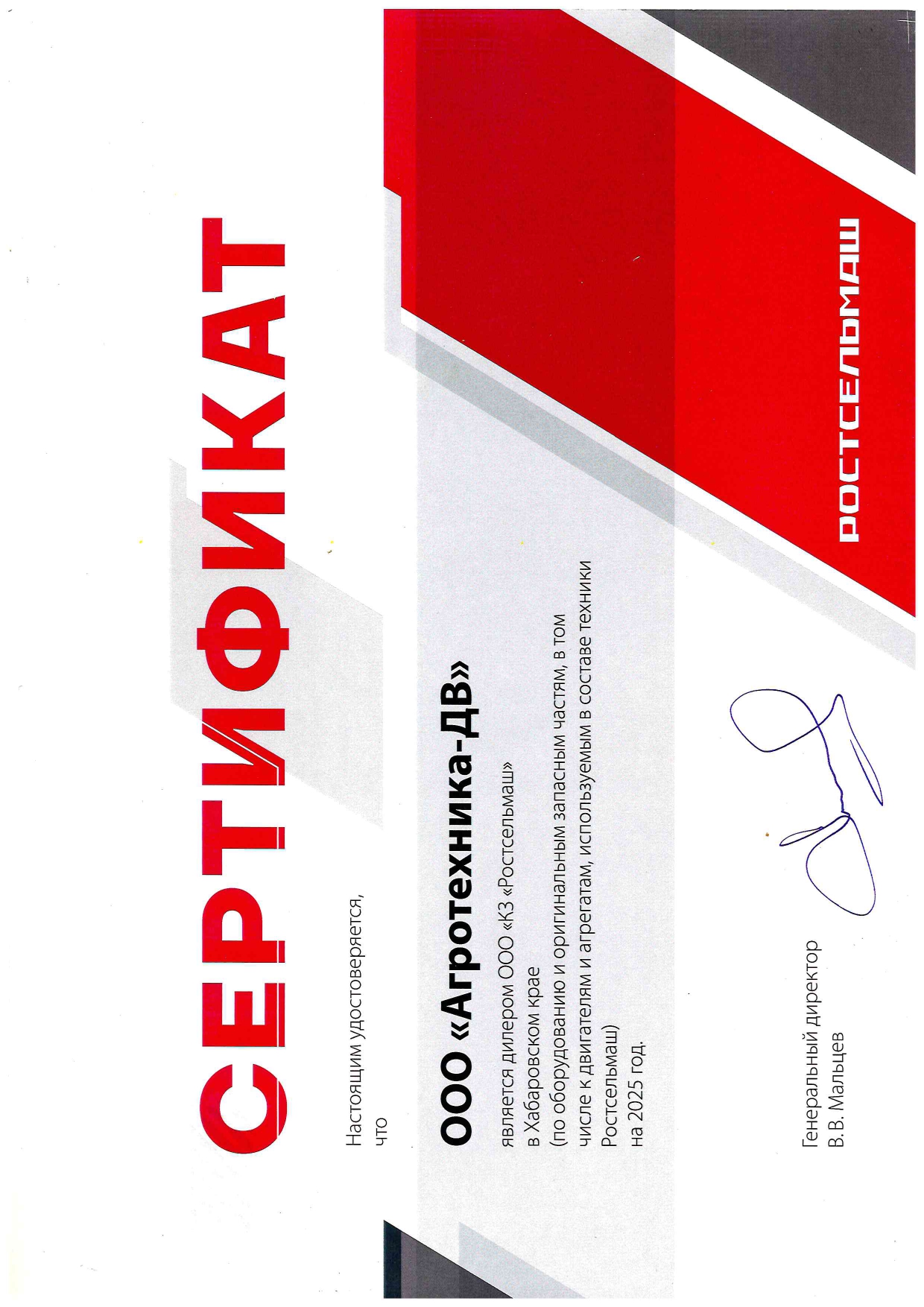 Дилерский сертификат 2025г